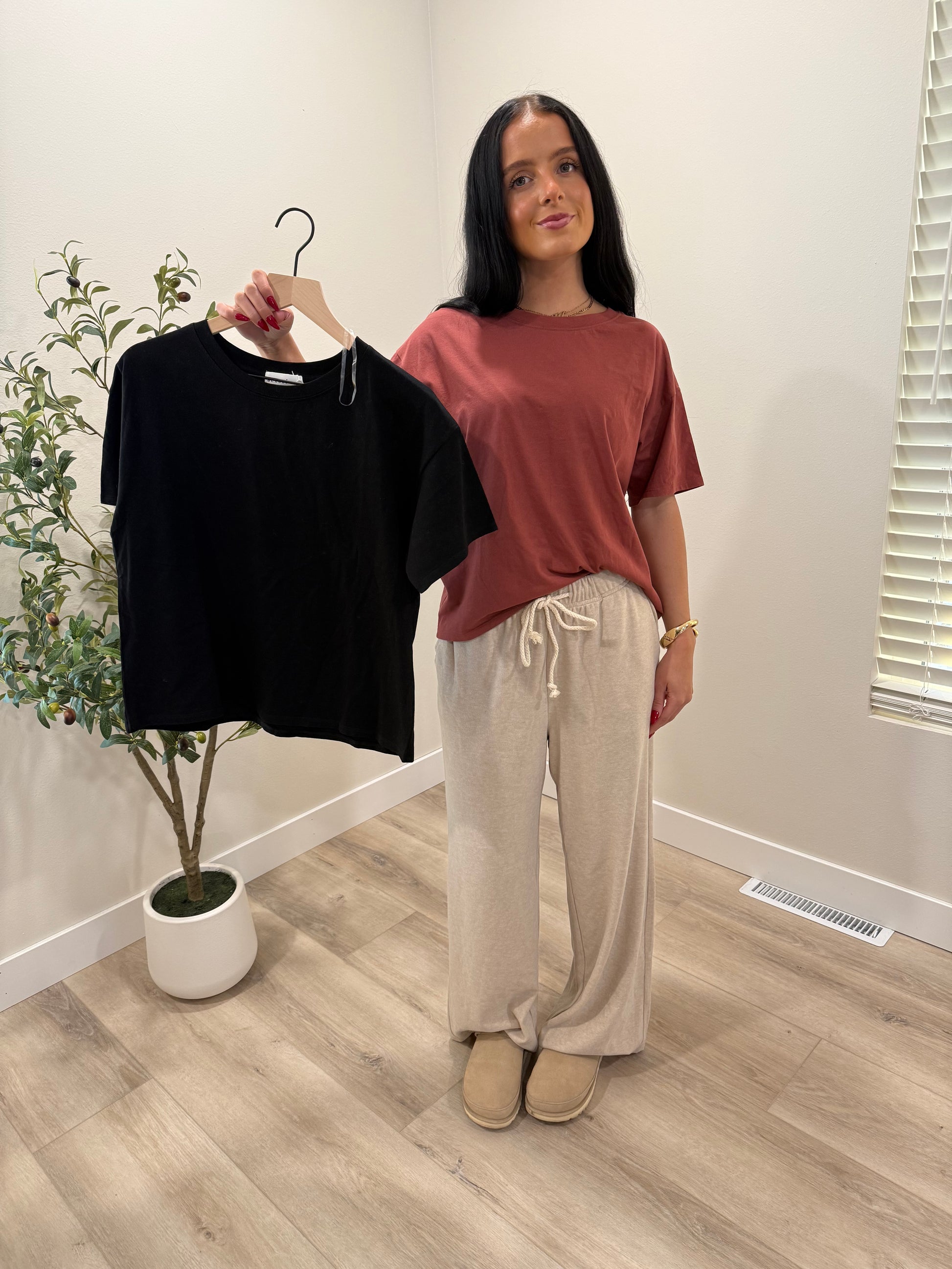 Isla is a soft oversized short sleeve tee shirt, ready to be layered with all of your favorite shackets or flannels this fall!