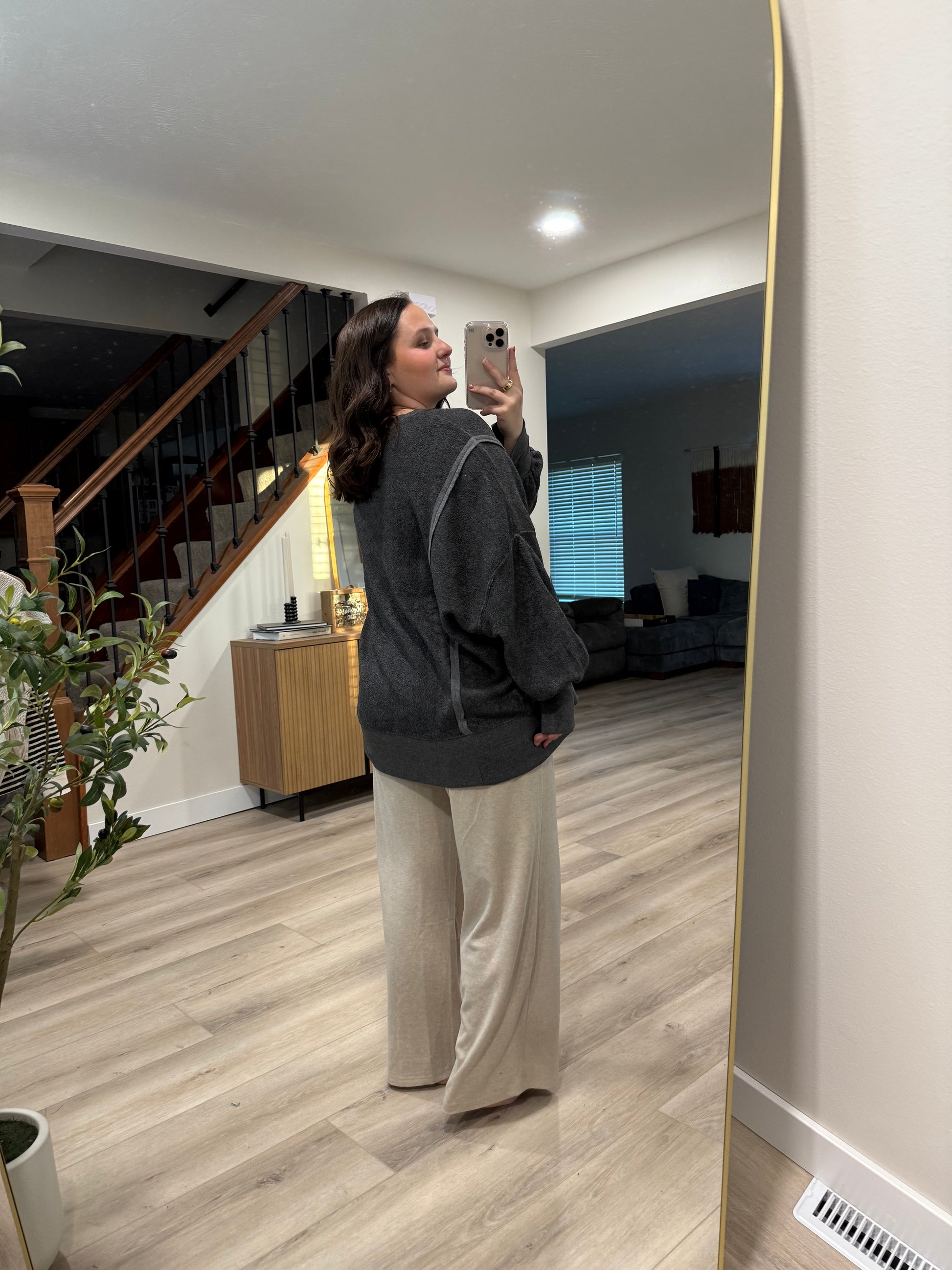 Embrace comfort with this oversized crewneck sweatshit, ideal for effortless styling. Its relaxed silhouette ensures a versatile fit, perfect for casual days or layering in chillier weather. It is SO soft, you need it in your closet!