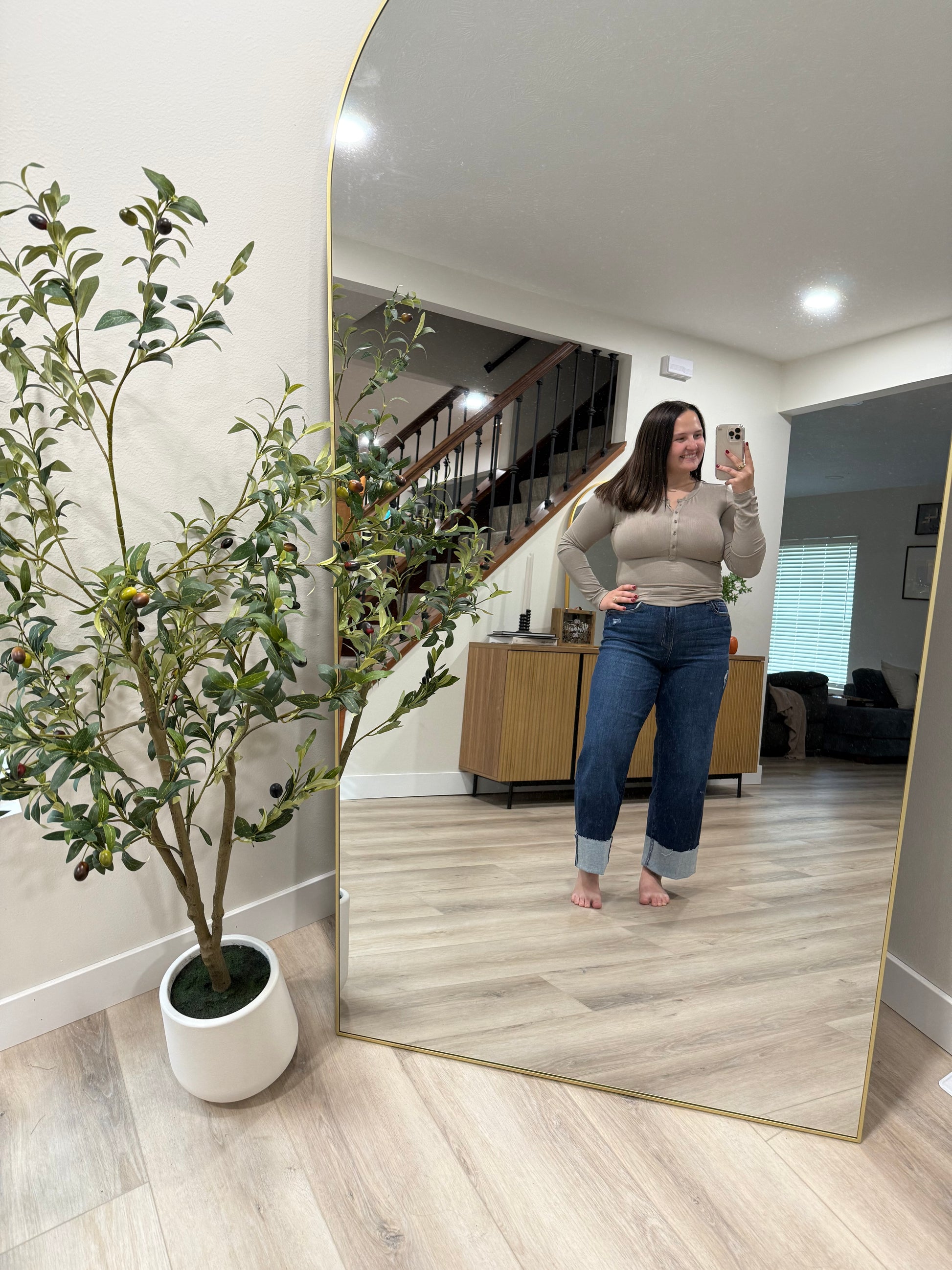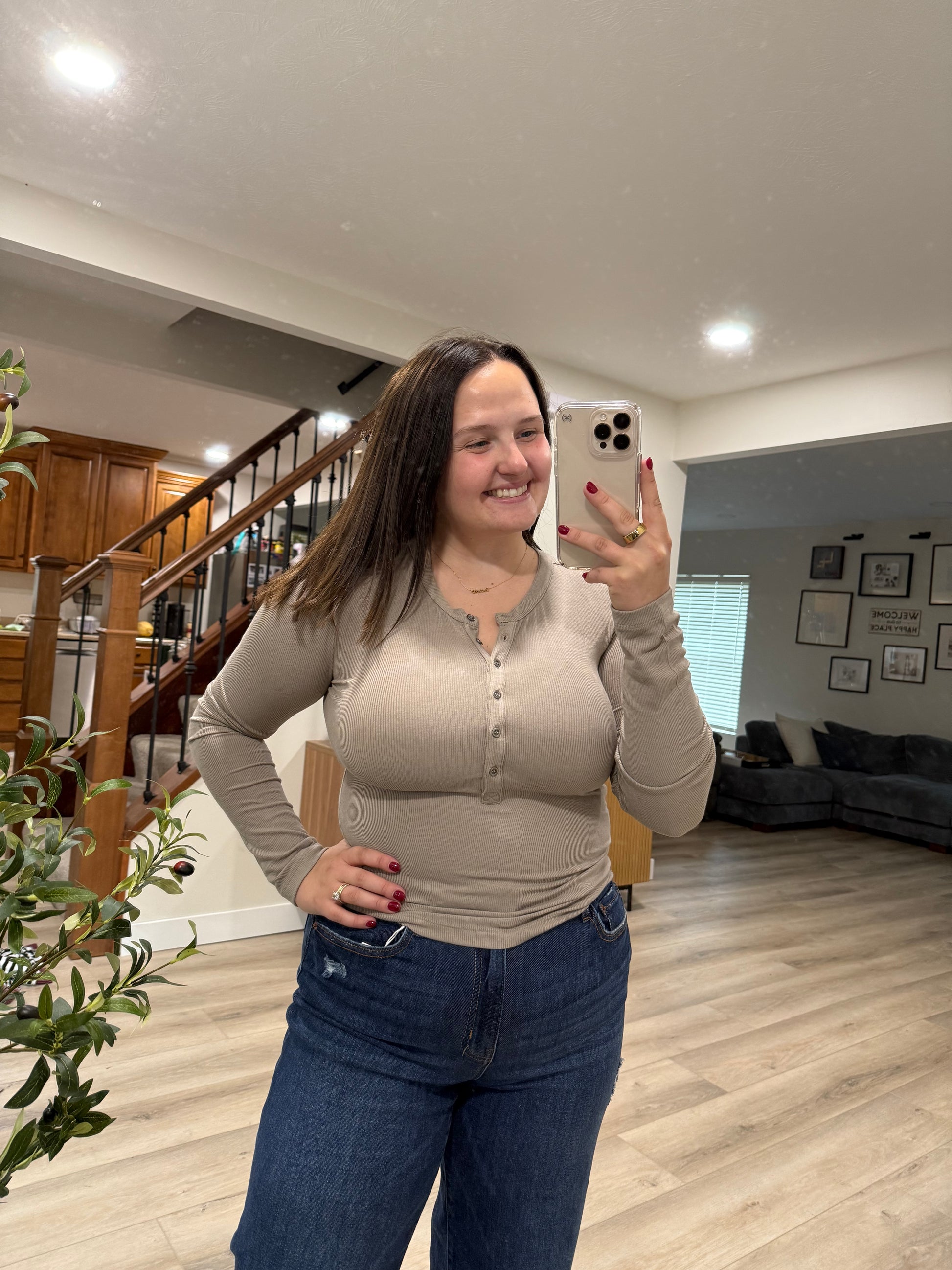 Skye is a soft ribbed long sleeve with buttons half way down.